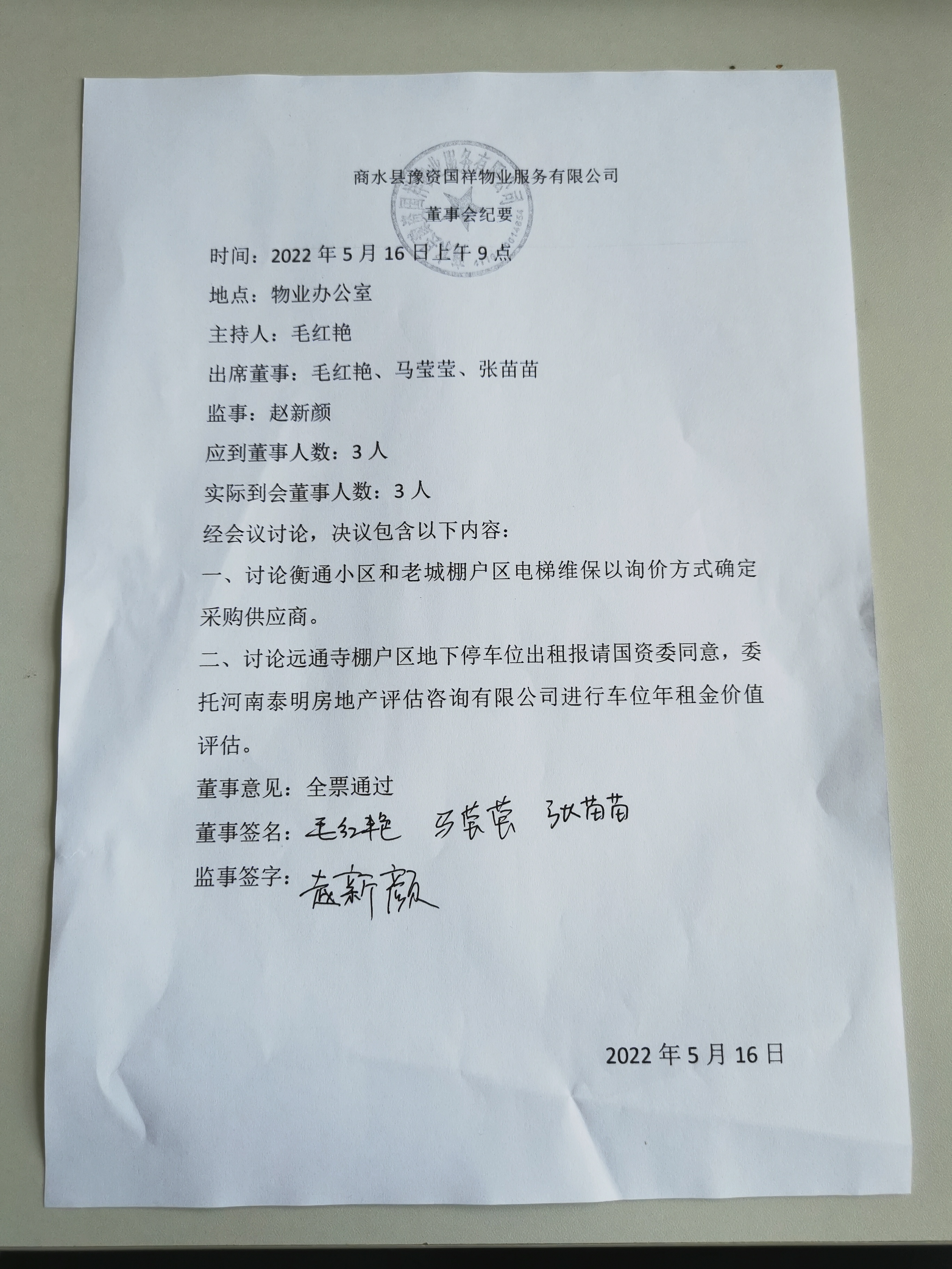 商水縣豫資國祥物業(yè)服務(wù)有限公司詢價紀(jì)要